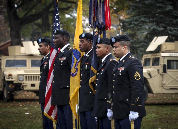 | Keywords: u.s. army usarmy soldier flag ceremony honor guard honorguard njng new jersey national guard newjerseynationalguard army national guard armynationalguard army memorial passaic nj army honor guard armyhonorguard usa outdoor Soldiers from the New Jersey Army National Guard Honor Guard participate in a memorial ceremony and monument dedication in Passaic, N.J., Nov. 9, 2016. The ceremony was for 15 Passaic soldiers who perished in a plane crash in 1961. (U.S. Air National Guard photo by Tech. Sgt. Matt Hecht/Released) Soldiers from the New Jersey Army National Guard Honor Guard participate in a memorial ceremony and monument dedication in Passaic, N.J., Nov. 9, 2016. The ceremony was for 15 Passaic soldiers who perished in a plane crash in 1961. (U.S. Air National Guard photo by Tech. Sgt. Matt Hecht/Released) |
