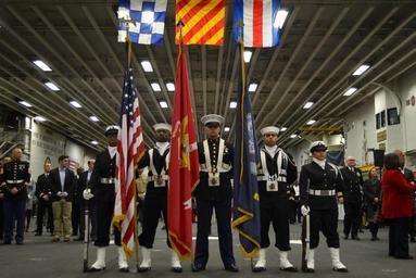 Keywords: 161113-N-VR583-082 161113-N-VR583-082.jpg en NEW YORK Nov 13 2016 The ceremonial color guard of the amphibious assault ship USS Iwo Jima LHD 7 prepares to parade the colors during a reception ceremony aboard Iwo Jima The ship recently returned from the humanitarian assistance mission to Haiti in the aftermath of Hurricane Matthew USNavy NYC VeteransDay Neverforget U S Navy photo by Petty Officer 3rd Class Gary J Ward/Released Unit Navy Media Content Services DVIDS Tags marine; veteran; service; nyc; members; new york; ny; 7; vet; day; uss; vets; veterans; ship; coast guard; navy; amphibious; air force; army; assault; lhd; weekend; NMCS; DVIDS Bulk Import 2016-11-14 Gary J Ward https //www dvidshub net/image/2989853/161113-n-vr583-082 161113-N-VR583-082 2016-11-15 02 17 PD-USGov-Military-Navy USS Iwo Jima LHD-7 Images from US Navy location Iwo Jima Japan Images from DoD uploaded by FĂŚ |