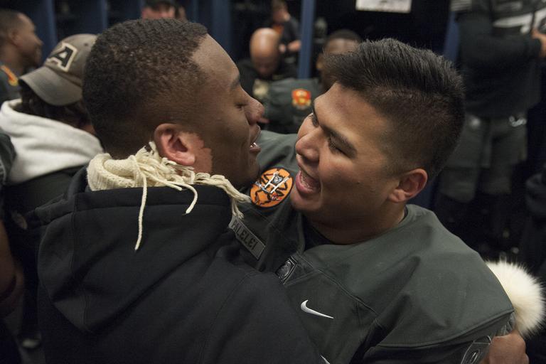 | Keywords: army navy armynavy army football armyfootball athletics football sports indoor Army West Point Football players celebrate after winning the 117th Army Navy Game presented by USAA at M&T Bank Stadium in Baltimore December 10, 2016. Army defeated the U.S. Naval Academy 21-17 snapping Navy’s 14-year win streak. (U.S. Army photo by: John Pellino) Army West Point Football players celebrate after winning the 117th Army Navy Game presented by USAA at M&T Bank Stadium in Baltimore December 10, 2016. Army defeated the U.S. Naval Academy 21-17 snapping Navy’s 14-year win streak. (U.S. Army photo by: John Pellino) |
