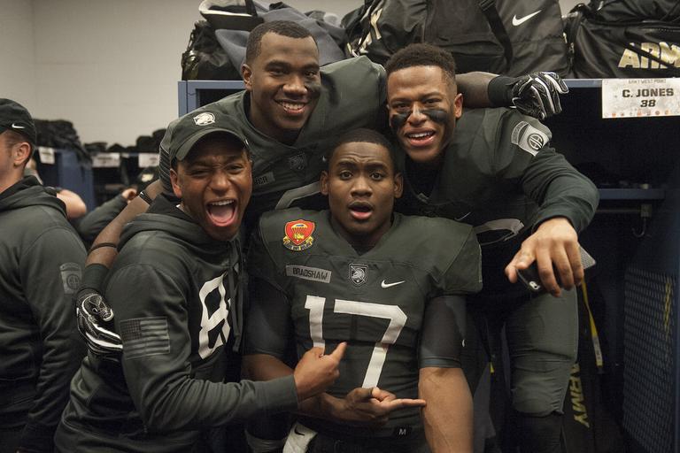 | Keywords: army navy armynavy army football armyfootball athletics football sports people groupshot Army West Point Football players celebrate after winning the 117th Army Navy Game presented by USAA at M&T Bank Stadium in Baltimore December 10, 2016. Army defeated the U.S. Naval Academy 21-17 snapping Navy’s 14-year win streak. (U.S. Army photo by: John Pellino) Army West Point Football players celebrate after winning the 117th Army Navy Game presented by USAA at M&T Bank Stadium in Baltimore December 10, 2016. Army defeated the U.S. Naval Academy 21-17 snapping Navy’s 14-year win streak. (U.S. Army photo by: John Pellino) |