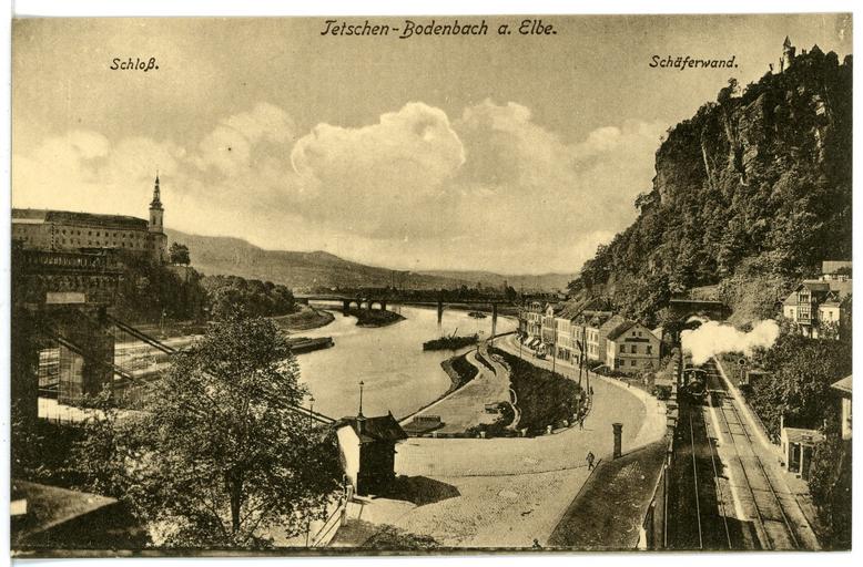 | Keywords: 16321-Tetschen-Bodenb.-1913-Schäferwand, Tunnel, Schloß, Brücke, Elbe, Zug-Brück & Sohn Kunstverlag.jpg Tetschen-Bodenb ; Schäferwand Tunnel Schloß Brücke Elbe Zug Brück Sohn 16321 yes 1913 own Brück Sohn Kunstverlag Meißen cc-zero Rail transport signals Děčín Castle Rail tunnels in the Czech Republic Bridges in Děčín Chain bridge in Děčín Elbe in Děčín Pastýřská stěna 1913 postcards of Ústí nad Labem Region 1913 postcards published by Brück Sohn Postcards of Děčín published by Brück Sohn Images from Brück Sohn Uploaded with VicuñaUploader |