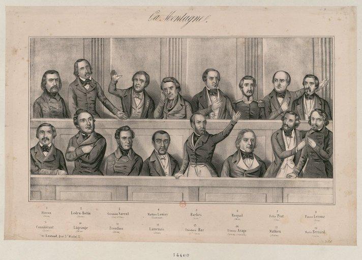 Keywords: 16 Représentants à leurs bancs de l'Assemblée constituante, 1848.jpeg fr Buffet Lithographe - Portrait collectif de 16 Représentants à leurs bancs de l'Assemblée sur 2 rangs Estampe in revue La Montagne Léotaud Éditeur quai Saint-Michel 11 2013-02-13 12 56 23 http //gallica bnf fr/ark /12148/btv1b530153386/f1 item Bnf Gallica La Montagne PD-old Uploaded with UploadWizard Victor Considerant Charles Lagrange Germain Sarrut Félicité Robert de Lamennais Théodore Bac Étienne Arago Mathieu de la Drôme Martin Bernard Ferdinand Flocon Alexandre Auguste Ledru-Rollin Pierre-Joseph Proudhon Louisy Mathieu Armand Barbès François-Vincent Raspail Félix Pyat Pierre Leroux National Constituent Assembly French Second Republic ImageNote 1 63 238 56 61 712 512 2 Ferdinand Flocon ImageNoteEnd 1 ImageNote 2 77 133 50 65 712 512 2 Victor Considerant ImageNoteEnd 2 ImageNote 3 253 133 47 56 712 512 2 Germain Sarrut ImageNoteEnd 3 ImageNote 4 137 113 56 59 712 512 2 Charles Lagrange ImageNoteEnd 4 ImageNote 5 136 205 66 85 712 512 2 Alexandre Auguste Ledru-Rollin ImageNoteEnd 5 ImageNote 6 310 147 54 61 712 512 2 Félicité Robert de Lamennais ImageNoteEnd 6 ImageNote 7 364 217 58 71 712 512 2 Armand Barbès ImageNoteEnd 7 ImageNote 8 292 254 51 64 712 512 2 Louisy Mathieu ImageNoteEnd 8 ImageNote 9 454 250 59 60 712 512 2 François-Vincent Raspail ImageNoteEnd 9 ImageNote 10 391 129 52 65 712 512 2 Théodore Bac ImageNoteEnd 10 ImageNote 11 219 242 54 77 712 512 2 Pierre-Joseph Proudhon ImageNoteEnd 11 ImageNote 12 548 214 46 59 712 512 2 Félix Pyat ImageNoteEnd 12 ImageNote 13 598 207 56 65 712 512 2 Pierre Leroux ImageNoteEnd 13 ImageNote 14 465 141 49 72 712 512 2 Étienne Arago ImageNoteEnd 14 ImageNote 15 591 140 42 61 712 512 2 Martin Bernard ImageNoteEnd 15 ImageNote 16 529 133 49 65 712 512 2 Mathieu de la Drôme ImageNoteEnd 16