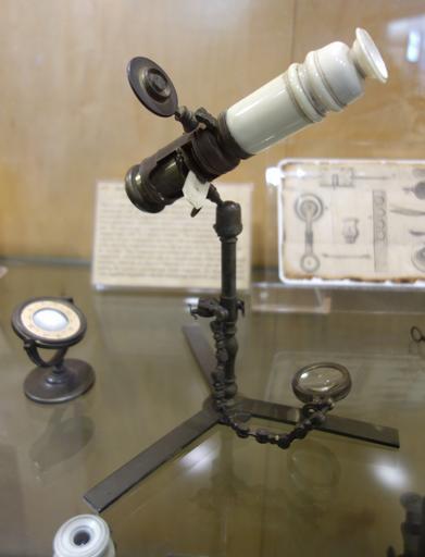 Keywords: 1720 circa, screw-barrel microscope with ivory double-microscope attachment and surveyor's sector as tripod, Edmund Culpeper, London - Golub Collection of Antique Microscopes - DSC04855.JPG en Microscope in the Golub Collection of Antique Microscopes exhibited at the University of California Berkeley - Berkeley California USA This microscope is old enough so that its design is in the public domain Photography was permitted without restriction 2013-11-15 14 11 36 own Daderot other versions cc-zero Microscopes in the Golub Collection of Antique Microscopes Uploaded with UploadWizard |