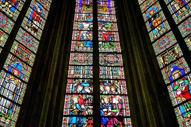 Keywords: church vitrail stained glass stainedglass haute-normandie hautenormandie france 2015 architecture window bright indoor atrium geometric Eglise de la Trinité, Fécamp Eglise de la Trinité, Fécamp