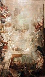 | Keywords: 1737 Holzer Triumph der Kuenste und Wissenschaften anagoria.JPG Artwork Creator Johann Evangelist Holzer en The Triumph of the Arts and Sciences Ceiling Design Oil on paper mounted on canvas The oil sketch is a design for the picture gallery of the Würzburg Residence that was not executed The representatives of the Seven Liberal Arts are placed around the two-story hall Art can be seen in a prominent position on the lower edge de Der Triumph der Künste und Wissenschaften Deckenentwurf Die Ölskizze ist ein nicht ausgeführter Entwurf für die Gemäldegalerie der Würzburger Residenz In einer zweigeschossigen Halle sind die Vertreter der sieben Freien Künste verteilt An prominenter Stelle an der unteren Schmalseite präsentiert sich die Kunst anagoria 1737 Institution Germanisches Nationalmuseum Triumphs Paintings in the Germanisches Nationalmuseum Johann Evangelist Holzer Rococo allegorical paintings 1737 paintings 1730s paintings from Germany 1730s paintings in Bavaria 18th-century oil on canvas paintings in Germany PD-old-100 Oil on paper Files by User anagoria |