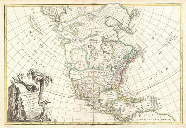 | Keywords: 1762 Janvier Map of North America (Sea of the West) - Geographicus - NorthAmerica-janvier-1762.jpg An altogether fascinating map of North America by Jean Janvier dating to 1862 Covers the continent from Panama to the arctic circle extends westward to include parts of Asia and eastward as far as Iceland This map which is heavily influenced by the theoretical mappings of Guillaume de l'Isle and Philippe Buache went through several states of which this is the first and possibly the most interesting Javier divides the continent according to the three colonial powers that controlled it with England controlling the colonies along the east coast France occupying Canada and Louisiana and Spain dominating Mexico Florida Cuba and Central America By far the most interesting aspects of this map deal with Janvier's treatment of the largely unexplored Pacific Northwest A magnificent sea called the Sea of the West or in this case the Baye de L'Ouest occupies the greater part of the northwestern part of the continent This body of water alternatively called the Sea of the West or Mer de l'Ouest was speculated by Philippe Buache and Guillaume De l'Isle in the early 18th century based upon wishful thinking American Indian stories and the somewhat questionable 16th century explorations of Juan de Fuca Janvier gives the Mer de l'Ouest its fullest expression though he specifically does not connect it to either the network of lakes and rivers extending westward form the Hudson Bay or to the similar network extending westward from Lake Superior These river and lake networks were being actively explored throughout the early 18th century by a number of little known but important French explorers Most specifically the explorations of Verenrye with regard to the discovery of the Lake of the Woods L Des Bois and Lake Winnipeg L Ouinipigon both of which appear on this map Further north we can find traces of Admiral de Fonte's apocryphal discovery of a passage from the Pacific starting at the Archipel St Lazare eastward via a network of lakes and rivers to Baffin Bay The De Fonte legend first appeared in a 1706 English publication entitled Memoirs of the Curious This short-lived magazine published a previously unknown account by a supposed Spanish Admiral named Bartholomew de Fonte De Fonte is said to have sailed up the Pacific coast of North America in 1640 On this voyage he apparently discovered a series of gigantic lakes seas and rivers heading eastward from the Pacific towards Hudson Bay The De Fonte story relates how on one of these great inland lakes he met with a westward bound ship from Boston that must to have come through the Northwest Passage Today based upon inaccuracies and falsities we know the entire De Fonte article to have been a fabrication however it set 18th century afire with speculation that a Northwest Passage must indeed exist Even such luminaries as Benjamin Franklin wrote long defenses of De Fonte Our map offers an uncommon variant on the De Fonte passage positioning its western entrada well to the north in order to accommodate the Sea of the West and situating its outlet at the Baffin rather than the Hudson Bay Even farther to the north we find the Strait of Ainan narrowly separating American from Asia The extreme northeast tip of Asia is itself fairly well mapped giving evidence to the explorations of Vitus Bering and Tschirikow Slightly to the south of Asia the cartography is slightly less certain with regard to a questionable landmass in the north Pacific This mass most likely stems from Tschirikow sightings of the Aleutian Islands and the assumption that they may have been joined On the opposite side of the map Janvier places the Great Lakes firmly within French territory a clear case of carto-advocacy The English colonies outlined in red are only vaguely accurate with regard to their borders with Pennsylvania and New Jersey extending north to the Canadian border 1762 dated Size in 18 12 5 object history credit line accession number NorthAmerica-janvier-1762 Lattre Jean <i>Atlas Moderne ou Collection de Cartes sur Toutes les Parties du Globe Terrestre</i> c 1775 Geographicus-source PD-old-100 Old maps of North America 1762 maps Maps by Jean Janvier North America in the 18th century Images from Geographicus Old maps of the Arctic French language maps of North America Northwest Passage |