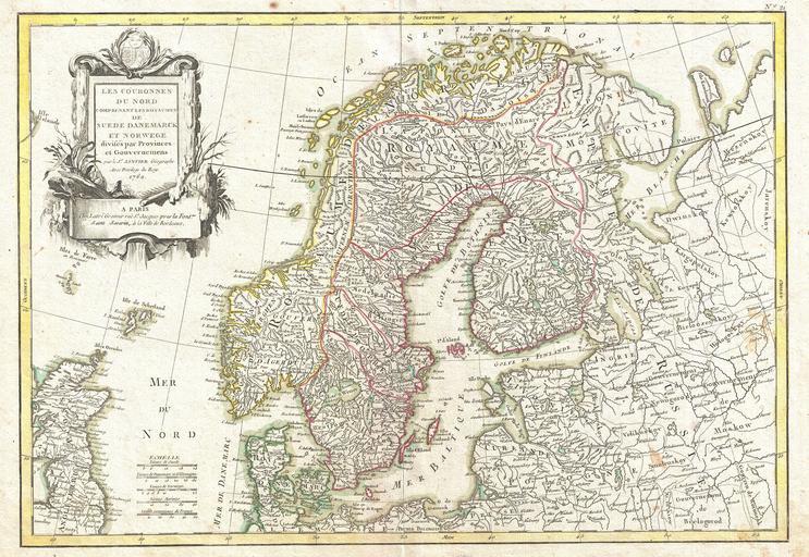 | Keywords: 1762 Janvier Map of Scandinavia - Norway, Sweden, Denmark, Finland - Geographicus - Scandinavia-janvier-1762.jpg A beautiful example of Jan Janvier's 1762 decorative map of Scandinavia Covers from Iceland and England eastward as far as Moscow north to the Arctic Sea and south as far as Denmark and Germany Includes the modern day nations of Sweden Denmark Norway and Finland Identifies towns cities rivers mountains and some undersea features Of particular interest is the legendary Lofoten Maelstrom in northwestern Norway This legendary whirlpool was the inspiration for Edgar Allan Poe's classic tale A Descent into the Maelstrom In reality it is a periodic and powerful current caused by tidal variations in the region A large decorative title cartouche appears in the upper left quadrant Drawn by J Janvier c 1762 for issue as plate no 21 in Jean Lattre's 1776 issue of the Atlas Moderne 1762 dated Size in 16 12 5 object history credit line accession number Scandinavia-janvier-1762 Lattre Jean <i>Atlas Moderne ou Collection de Cartes sur Toutes les Parties du Globe Terrestre</i> c 1775 Geographicus-source PD-old-100 Maps by Jean Janvier 1762 maps Old maps of Scandinavia French language maps of Europe |