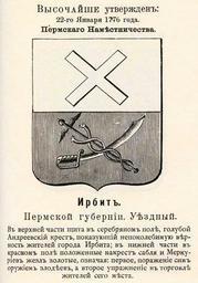 | Keywords: Ирбит 1776 из Винклера.jpg Official Russian Empire Irbit coat of arms Ге б уездного го ода И бит Пе мской губе нии Российской Импе ии с официальным описанием в Ге бовнике Павла Пет овича Винкле а П П фон-Винкле Ге бы го одов губе ний областей и посадов Российской Импе ии внесенные в Полное Соб ание законов с 1649 по 1900 год Дозволено цензу ою С -Пете бу г 20 Июля 1899 года Издание книгото говца Ив Ив Иванова С -Пете бу г Типог афия И Комелова П яжка д 3 1899 / Scanned 1776 / 1899 published П П фон Винкле / Pavel von Vinkler PD-old PD-RusEmpire PD-RU-exempt coats of arms Gerbovnik Vinklera - City CoAs Coats of arms of Perm Governorate Crosses in heraldry Sabres in heraldry Snakes in heraldry |