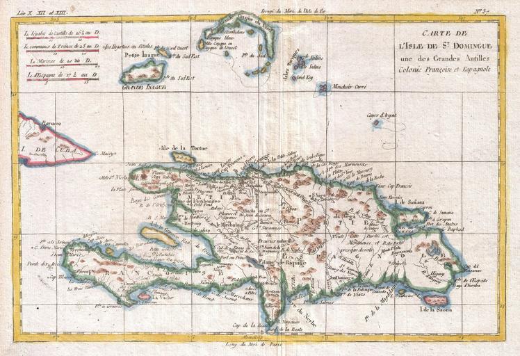 Keywords: 1780 Raynal and Bonne Map of Hispaniola, West Indies - Geographicus - StDomingue-bonne-1780.jpg A fine example of Rigobert Bonne and Guilleme Raynal ™s 1780 map of Hispaniola or Santo Domingo modern day Haiti and the Dominican Republic Includes southeast tip of Cuba the Inagua Islands southern Bahamas and Turks and Caicos Islands Highly detailed identifying towns rivers some topographical features political boundaries and important ports Drawn by R Bonne for G Raynal ™s Atlas de Toutes les Parties Connues du Globe Terrestre Dressé pour l'Histoire Philosophique et Politique des Établissemens et du Commerce des Européens dans les Deux Indes 1780 undated Size in 13 9 object history credit line accession number StDomingue-bonne-1780 Raynal G <i>Atlas de Toutes les Parties Connues du Globe Terrestre Dressé pour l'Histoire Philosophique et Politique des Établissemens et du Commerce des Européens dans les Deux Indes</i> 1780 Geographicus-source PD-old-100 Old maps of the Dominican Republic Old maps of Haiti 1780 maps Old maps of Hispaniola Maps by Rigobert Bonne |