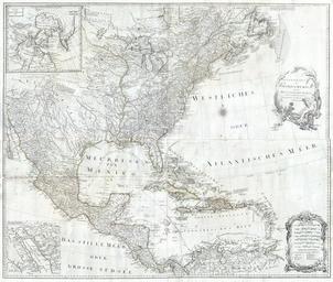 | Keywords: 1788 Schraembl - Pownall Map of North America ^ the West Indies - Geographicus - NorthAmerica2-schraembl-1788.jpg A rare and extraordinary post-colonial wall map of North America by Vienna map publisher Franz Anton Schraembal Printed in 1788 for inclusion in Schraembal ™s Allgemeiner Grosser Atlas this is one of the first maps issued to depict North America following the American Revolutionary War While this map has been updated to reflect the surveys prepared under Massachusetts governor Thomas Pownall it is heavily based upon the important 1783 map of North America issued by Sayer and Bennet The whole is beautifully rendered with wonderful detail regarding the early states roads canals the Great Lakes American Indian Nations and explorer ™s observations Vermont is not present on the map Most of the southern states are without western boundaries but seem to extend only to the Appellation Mountain range In the upper left quadrant there is an inset of the Baffin and Hudson Bay region including some references to the explorations of Admiral De Fonte in search of a Northwest Passage as well as to the indigenous Eskimo tribes Another inset in the lower left quadrant shows the parts of California which Father Franz Kino walked between 1698 and 1701 Kino headed the historic expedition which proved California to be attached to the North American mainland and ultimately defeated the California as an Island theory Upper right quadrant features an elaborate title cartouche depicting a stylized American Indian woman and cherubs wrestling fish from the sea A second cartouche in the lower right quadrant features a key to the map A altogether magnificent map offering both stunning beauty and historic value 1788 dated Size in 45 25 39 object history credit line accession number NorthAmerica2-schraembl-1788 Schraembal F A <i>Allgemeiner Grosser Atlas</i> 1788 edition Geographicus-source PD-Art-100 1788 maps Old maps of North America Old maps of Central America Old maps of the Caribbean Maps by Franz Anton Schraembl Caribbean in the 1780s North America in the 1780s Maps of Baffin Bay Hudson Bay Maps in German Gulf of California |