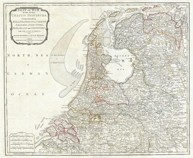 | Keywords: 1794 Laurie and Whittle Map of Holland or The Netherlands - Geographicus - Holland-lauriewhittle-1794.jpg An extraordinary 1794 map of Holland or the Netherlands by Laurie and Whittle Covers from Zeeland eastward as far as the Circle of Westphalia north to the mouth of the Ems River and south as far as the Bishopric of Liege Includes the modern day nation of the Netherlands as well as adjacent parts of Germany and Belgium Renders the entire region in extraordinary detail offering both topographical and political information Undersea shoals canals swamps and lakes are beautiful rendered in fine engraving Color coded according to region A key and title cartouche appear in the upper left quadrant Published by Laurie Whittle for Kitchin's 1794 General Atlas 1794 dated Size in 23 19 object history credit line accession number Holland-lauriewhittle-1794 Kitchin Thomas <i>Kitchin's General Atlas describing the Whole Universe being a complete collection of the most approved maps extant; corrected with the greatest care and augmented from the last edition of D'Anville and Robert with many improvements by other eminent geographers engraved on Sixty-Two plates comprising Thirty Seven maps </i> Laurie Whittle London 1797 Geographicus-source PD-Art-100 Old maps of the Netherlands 1794 maps English language maps of Europe |
