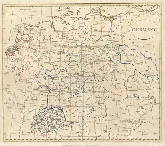 Keywords: 1799 Celement Cruttwell Map of Germany - Geographicus - GermanySwitzerland-cruttwell-1799.jpg A fine 1799 map of Germany by the English map publisher Clement Cruttwell Includes the regions of Westphalia the Upper and Lower Rhine Circles of Upper and Lower Saxony Lusatia Dutchy of Silesia Moravia Bohemia Swabia Circle of Bavaria Circle of Franconia and the Circle of Austria Switzerland appears in the south Includes rivers political boundaries important cities ports and gulfs Mountains and other topographical features shown by profile Outline color and fine copper plate engraving in the minimalist English style prevalent in the late 18th and early 19th centuries Drawn by Clement Cruttwell and published in the 1799 Atlas to Cruttwell's Gazetteer 1799 dated Size in 15 14 object history credit line accession number GermanySwitzerland-cruttwell-1799 Cruttwell C <i>Atlas to Cruttwell's Gazetteer</i> 1799 Geographicus-source PD-Art-100 Maps by Clement Cruttwell Old maps of Germany 1799 maps Old maps of Switzerland Old maps of Austria Old maps of the Netherlands English language maps of Europe |