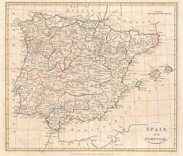 Keywords: 1799 Clement Cruttwell Map of Spain and Portugal - Geographicus - Spain-cruttwell-1799.jpg A fine 1799 map of Spain and Portugal by the English map publisher Clement Cruttwell Map shows the provinces as they appeared at this time including the islands of Majorca Minorca and Ibiza Yvica The most prominent provinces are New and Old Castile at the center of the map A former kingdom the areas eventually merged with their neighbors and today comprise the autonomous region of Castile y León in the northwest and Castilla-La Mancha and Madrid in the center and south of the country Many of the provinces appear in their modern configuration Outline color and fine copper plate engraving in the minimalist English style prevalent in the late 18th and early 19th centuries Drawn by G G and J Robinson of Paternoster Row London for Clement Cruttwell's 1799 Atlas to Cruttwell's Gazetteer 1799 dated Size in 16 14 object history credit line accession number Spain-cruttwell-1799 Cruttwell C <i>Atlas to Cruttwell's Gazetteer</i> 1799 Geographicus-source PD-Art-100 Old maps of the Iberian Peninsula 1799 maps Maps by Clement Cruttwell English language maps of Europe 1799 in Spain |