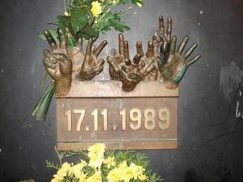| Keywords: 17listopadu89 pomnik (detail).JPG Detail of the Monument to the student manifestations of November 17th in Prague repressed by the police they led to the fall of communism in Czechoslovakia Détail du Mémorial aux manifestations estudiantines du 17 novembre 1989 réprimées par la police elles conduisirent a la chute du communisme en Tchécoslovaquie detail Pomnik 17ého listopadu 1989 Own 2006 Rémi Diligent 17 November Sculptures of hands Velvet Revolution monument at Národní street Plaques referencing 1989 |