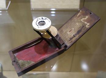 Keywords: 1800 circa, folding simple microscope, William Withering, England - Golub Collection of Antique Microscopes - DSC04843.JPG en Microscope in the Golub Collection of Antique Microscopes exhibited at the University of California Berkeley - Berkeley California USA This microscope is old enough so that its design is in the public domain Photography was permitted without restriction 2013-11-15 14 10 35 own Daderot other versions cc-zero Microscopes in the Golub Collection of Antique Microscopes Uploaded with UploadWizard |