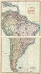 | Keywords: 1807 Cary Map of South America - Geographicus - SouthAmerica-cary-1807.jpg A fine example of John Cary ™s spectacular 1807 two sheet map of South America Covers the entirety of South America on two sheets The upper sheet details the region from Cuba southwards as far as Lake Titicaca and Porto Bello Brazil Includes the Windward Isles or the Lesser Antilles The bottom sheet details from Porto Seguro Brazil southward as far as Patagonia and Tierra del Fuego Includes the Falkland Islands and South Georgia Island Both sheets offer stupendous detail of the interior with liberal reference to numerous indigenous tribal groups “ especially in the Amazon Color coded according to region Both sheets could be combined to form a single gigantic wall map of South America at the buyer ™s discretion All in all one of the most interesting and attractive atlas maps South America to appear in first years of the 19th century 1807 dated Size in 20 5 37 object history credit line accession number SouthAmerica-cary-1807 Cary John <i>Cary's New Universal Atlas containing distinct maps of all the principal states and kingdoms throughout the World From the latest and best authorities extant </i> London Printed for J Cary Engraver and Map-seller No 181 near Norfolk Street Strand 1808 Geographicus-source PD-old-100 1807 maps Old maps of South America 1807 1807 in South America 1807 Maps by John Cary |