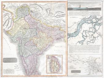 | Keywords: 1814 Thomson Map of India w-Ganges - Geographicus - Hindoostan-t-1814.jpg A magnificent map and the rarest of the Thomson India series This is the 1814 map of India with inset maps of the Ganges River by Edinburgh cartographer John Thomson Depicts the whole of India from Lahore to the idle of Ceylon Shi Lanka Right hand side of the map is dedicated to a careful mapping of the Ganges River Includes a cross-section of the Ganges a map of the course of the Ganges in the dry season and a map of the Inland Navigations routes along the river from the Bay of Bengal to Allahabad This map ™s magnificent size beautiful color and high detail make this one of the finest maps of this region to appear in the early 19th century 1814 Size in 24 20 object history credit line accession number Hindoostan-t-1814 Geographicus-source PD-old-100 Old maps of the Indian Subcontinent Maps of the Ganges River Maps by John Thomson Old maps of Sri Lanka Maps in English 1814 maps of India Sri Lanka in the 1810s Maps of India and Sri Lanka English language maps of Sri Lanka |