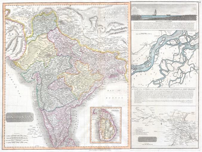 Keywords: 1814 Thomson Map of India w-Ganges - Geographicus - Hindoostan-t-1814.jpg A magnificent map and the rarest of the Thomson India series This is the 1814 map of India with inset maps of the Ganges River by Edinburgh cartographer John Thomson Depicts the whole of India from Lahore to the idle of Ceylon Shi Lanka Right hand side of the map is dedicated to a careful mapping of the Ganges River Includes a cross-section of the Ganges a map of the course of the Ganges in the dry season and a map of the Inland Navigations routes along the river from the Bay of Bengal to Allahabad This map ™s magnificent size beautiful color and high detail make this one of the finest maps of this region to appear in the early 19th century 1814 Size in 24 20 object history credit line accession number Hindoostan-t-1814 Geographicus-source PD-old-100 Old maps of the Indian Subcontinent Maps of the Ganges River Maps by John Thomson Old maps of Sri Lanka Maps in English 1814 maps of India Sri Lanka in the 1810s Maps of India and Sri Lanka English language maps of Sri Lanka |