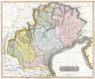 Keywords: 1814 Thomson Map of the Venetian States (Venice), Italy - Geographicus - VenetianStates-t-1814.jpg This fascinating hand colored 1814 map by Edinburgh cartographer John Thomson depicts the Venetian States of Italy This includes the area immediately surrounding the floating city of Venice Trevigiano Friuli Padova and Vicentino Extends to Trent in the north Lombardy in the East and the Papal States in the south 1814 Size in 24 20 object history credit line accession number VenetianStates-t-1814 Geographicus-source PD-old-100 Maps by John Thomson 1814 maps Maps in English Old maps of Veneto Old maps of Trentino-South Tyrol Old maps of Friuli-Venezia Giulia |
