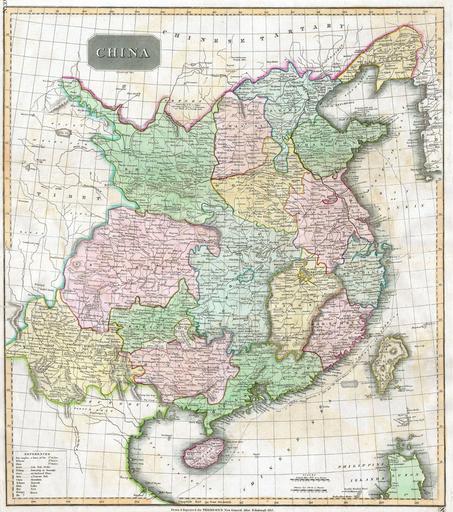 | Keywords: 1815 Thomson Map of China and Formosa (Taiwan) - Geographicus - China-t-15.jpg This fascinating hand colored 1814 map by Edinburgh cartographer John Thomson depicts China Shows the Great Wall of China as the northern boundary Extends as far west as the Tibetan plateau and as far south as the old Vietnamese/Chinese Kingdom of Tonkin or Tungouin as labeled Includes important early shipping routes from India to Beijing and curious notes about the nomadic people to the north of China the Ortoos and the Eluts of Koko Nor 1815 Size in 23 21 object history credit line accession number China-t-15 Geographicus-source PD-old-100 19th-century maps of China Maps of the history of Vietnam Old maps of Taiwan Maps by John Thomson 1815 maps |