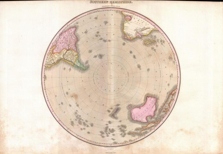 | Keywords: 1818 Pinkerton Map of the Southern Hemisphere ( South Pole, Antarctic ) - Geographicus - SouthernHemisphere-pinkerton-1818.jpg A rare and important 1818 map of the Southern Hemisphere by John Pinkerton On a Polar projection this map depicts Australia Polynesia and the parts of South America and Africa This map was issued after the search for Terra Australis or the Great Southern Continent had been abandoned but prior to the discovery of Antarctica - consequently the South Pole is depicted as a vast ocean called Icy Sea In the more populated lands to the north this map offers fairly accurate shorelines throughout In Africa the interior remains unexplored except for the Congo the Cape Colony and the gold mining regions of Monomotapa Similarly the coasts of Australia are accurate but the interior is vague and unknown Drawn by L Herbert and engraved by Samuel Neele under the direction of John Pinkerton The map comes from the scarce American edition of Pinkerton ™s Modern Atlas published by Thomas Dobson Co of Philadelphia in 1818 1818 undated Size in 20 22 object history credit line accession number SouthernHemisphere-pinkerton-1818 Pinkerton J <i>A Modern Atlas from the Lates and Best Authorities Exhibiting the Various Divisions of the World with its chief Empires Kingdoms and States; in Sixty Maps carefully reduced from the Larges and Most Authentic Sources </i> 1818 Philadelphia Thomas Dobson Edition Geographicus-source PD-old-100 Maps by John Pinkerton 1818 maps Old maps of Earth's hemispheres Old maps of Antarctica |