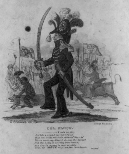 | Keywords: 1825 ColPluck byDClaypooleJohnston LibraryOfCongress.jpg Col Pluck 1825 By D C Johnston MEDIUM 1 print lithograph on wove paper ; 19 5 x 18 cm image CREATED/PUBLISHED Boston Lith of Pendleton 1825 Library of Congress Prints and Photographs Division Washington D C 20540 USA http //hdl loc gov/loc pnp/pp print 1825 creator David Claypoole Johnston Pendleton's Lithography David Claypoole Johnston PD-old-100 | ||||
