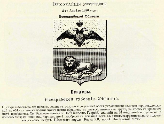 | Keywords: Бендеры 1826 из Винклера.jpg  Official Russian Empire coat of arms Bendery Ге б Российской Импе ии уездного го ода Бенде ы Бесса абской губе нии с официальным описанием в Ге бовнике Винкле а П П фон-Винкле Ге бы го одов губе ний областей и посадов Российской Импе ии внесенные в Полное Соб ание законов с 1649 по 1900 год Дозволено цензу ою С -Пете бу г 20 Июля 1899 года Издание книгото говца Ив Ив Иванова С -Пете бу г Типог афия И  Комелова П яжка д 3 1899 \ Scanned by Vizu 1826 \ 1899 published П П фон Винкле \ Pavel von Vinkler PD-old PD-RusEmpire PD-RU-exempt coats of arms Gerbovnik Vinklera - City CoAs Coats of arms of Bessarabia Governorate Lions in heraldry |