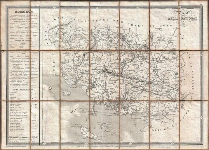 | Keywords: 1833 Charle Map of the Dept. of Morbihan, Bretagne, France - Geographicus - Morbihan-charle-1833.jpg A rare and very attractive 1833 map of the Morbihan region of Bretagne Breton or Brittany France Covers the entire Province from the Department de Finisterre to the Department de La Loire Morbihan is an exceptionally beautiful part of the Breton cost noted for its many islands many of which are now privately owned by movie stars politicians well known musicians and other influentials Morbihan is named for its most unusual feature a large inland sea near Vannes itself called The Morbihan This regions ia also the home of the mysterios megalithic ruins at Carnac This map was drawn by Charle and engraved by Dumortier as plate no 55 in Dauty and Roret ™s 1833 Nouvel Atlas National This departmental atlas of France was issued both bound as a book and as a collection of linen backed pocket format maps “ as seen here 1833 dated Size in 21 14 74 object history credit line accession number Morbihan-charle-1833 Charle J B L <i>NouvelAtlas National</i> 1833 Pocket Edition Geographicus-source PD-art Old maps of Morbihan 1833 maps |