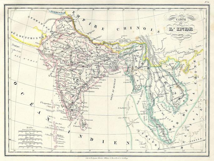 | Keywords: 1837 Malte-Brun Map of India, Burma and Southeast Asia (Siam , Vietnam ) - Geographicus - India-mb-1837.jpg  This is a beautiful 1836 copperplate lithograph map of India and Southeast Asia by French cartographer Malte-Brun Includes the modern day nations of India Bangladesh Burma Myanmar Thailand Cambodia Vietnam Malaysia and Singapore Also shows the 19th century kingdoms of Tonquin and Cochin in modern day Vietnam Straits of Singapore or Sincapour noted All text is in French 1836 Size in 12 9 5 object history credit line accession number India-mb-1837 Geographicus-source PD-art Old maps of South Asia Old maps of Southeast Asia Victor Adolphe Malte-Brun 1836 maps Maps in French Maps of the history of Vietnam |