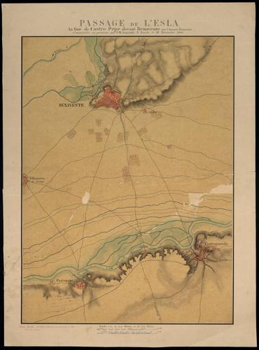 Keywords: 1847 Passage de l'Esla map.jpg 1847 maps fr Passage de L'Esla Au Gué de Castro-Pepe devant Benavente 1847 es Mapa que incluye a Benavente Castrogonzalo y el río Esla de 1847 que es una copia de un original francés de 1808 http //bvpb mcu es/es/consulta/registro cmd id 408129 1847 copy of a 1808 french original author PD-old-100 Old maps of Spain 1847 in Spain |