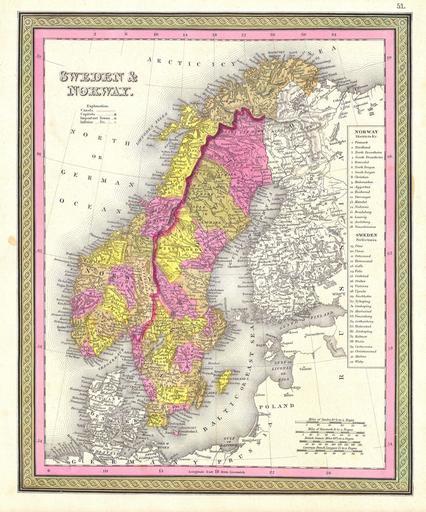 Keywords: 1850 Mitchell Map of Sweden and Norway - Geographicus - SwedenNorway-m-50.jpg This scarce hand colored map is a lithographic engraving of Norway and Sweden dating to 1846 by the legendary American Mapmaker S A Mitchell the elder Depicts Scandinavia in full from the Arctic to Denmark Includes Finland Chart of governing districts on the left side 1850 Size in 12 5 10 object history credit line accession number SwedenNorway-m-50 Geographicus-source PD-old-100 Maps by Samuel Augustus Mitchell Old maps of Scandinavia 1850 in Sweden 1850 maps Maps in English |