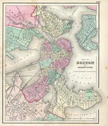 | Keywords: 1857 Colton Map of Boston, Massachusetts - Geographicus - Boston-colton-1857.jpg An excellent 1857 example of Colton's map of Boston Massachusetts Includes the surrounding communities of Cambridge Summerville Charleston East Boston South Boston and Roxbury Hand colored in pink green yellow and blue pastels with considerable detail at level of individual streets and buildings This is an exceptionally interesting and important map of Boston issued just prior to the Back Bay land reclamation projection The street and avenue grid is ghosted-in in anticipation of this enormous urban development project Modern residents of the Back Bay may still recognize the Mill Dam Beacon Street and the railroad crossings The rest of this projection with its large oval pond may be more confusing This layout is based on the real estate ambitions of David Sears who acquired much of this property in anticipation of the impending land fill He believed the lake which never materialized would make adjacent properties more desirable Dated and copyrighted to J H Colton 1855 Published as page no 16 in the 1857 edition of George Washington Colton's Atlas of the World This was the first edition of Colton's atlas in which the maps were printed without Colton's trademark spiral motif border design 1857 dated 1855 Size in 12 5 15 object history credit line accession number Boston-colton-1857 Colton G W <i>Colton's Atlas of the World Illustrating Physical and Political Geography</i> New York 1857 Geographicus-source PD-old-100 Maps by Joseph Hutchins Colton Old maps of Boston 1857 maps |