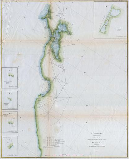 | Keywords: 1857 U.S.C.S. Map of San Francisco Bay - Geographicus - SanFrancisco-uscs-1857.jpg A rare nautical triangulation chart of the California coast from Pt Sal to Tomales Bay including the San Francisco Bay area by the U S Coast Survey 1857 Depicts the much of the shoreline of southern California with numerous notations regarding the various ports and sailing references Produced in 1857 under the Supervision of A D Bache the most influential leader of the Coast Survey Dated 1857 Size in 24 5 19 5 object history credit line accession number SanFrancisco-uscs-1857 Geographicus-source PD-art United States Coast Survey maps Maps of the San Francisco Bay Area 1857 maps |