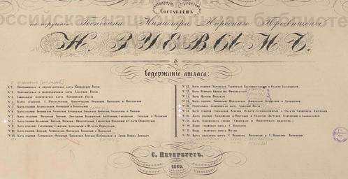 Keywords: Шифр хранения: К 3-Росс 9/244 Подробный атлас Российской империи [Карты] / Сост. по поручению Господина министра народного просвещения Н.Зуевым. - Санкт-Петербург, 1860. - 1 атл.(26 л.) : цв., гербы, табл. ; 66х45 см см <a href="http://leb.nlr.ru/fullpage/330843" rel="nofollow">leb.nlr.ru/fullpage/330843</a> 1860 карта российскаяимперия атлас рнб map russianempire nationallibraryofrussia nlr