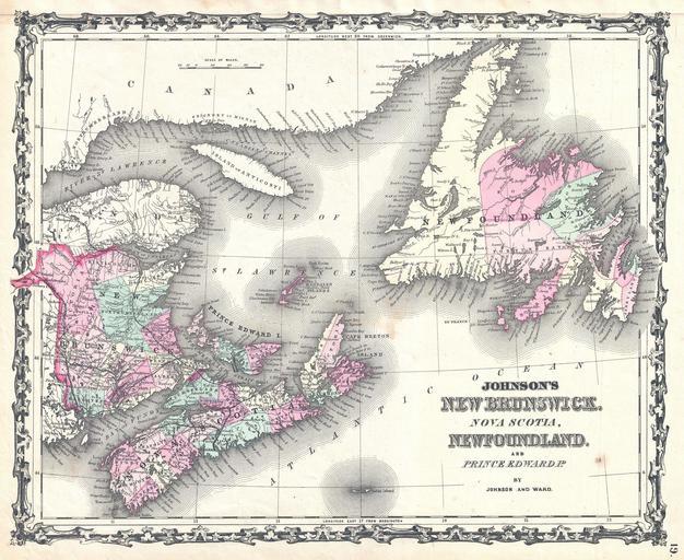 MAKE A MEME View Large Image Johnson Map of New Brunswick, Nova Scotia and Newfoundland, Canada - Geographicus - NewFoundland-johnson-1862.jpg A very beautiful example of Johnson's 1862 map of the Canadian provinces of New Brunswick Nova Scotia Prince Edward Island and ...