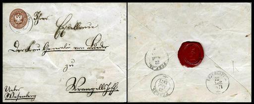 Keywords: Ревель-Везенберг1871.jpg ru Штемпельный конве т отп авленный из Ревеля в Везенбе г 1871 Personal collection Processed by A Sdobnikov Russian post 1871 PD-old-100 Postal stationery of Estonia Postmarks of Tallinn Postal stationery of Russia Postmarks of Russia Sealing wax |
