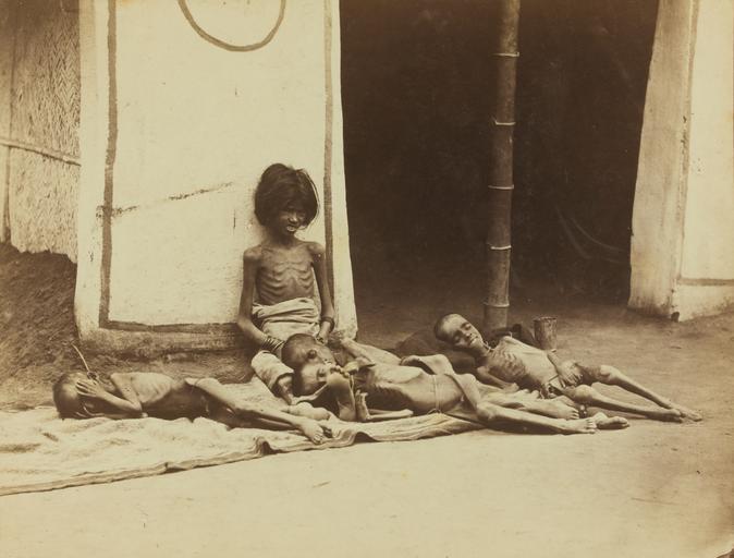 Keywords: 1876 1877 1878 1879 Famine Genocide in India Madras under British colonial rule.jpg en 1876-1879 famine in India Digby estimated 10 3 million people starved to death most of which were in South India some refer to the tragedy as the Madras famine Maharatna estimated 8 2 million died from hunger and diseases that followed British colonial rule argued that famine relief would be an inappropriate response and encourage laziness Some officials argued the Thomas R Malthus theory that famines are a nature's way for population control and argued British government should not intervene British government continued its policy of forced export of food from India in 1876-1879 while the famine swept among its people The poverty misery and diseases wiped out villages and families Some farmers and their families committed suicide during this 3 year period from the trauma and the extended period of starvation Parents killed themselves so that their children could eat the remaining scraps of food creating a pool of abandoned and foresaken children Photograph by Willoughby Wallace Hooper 1876-1879 For more on the famine see Late Victorian Holocausts El NiƱo Famines and the Making of the Third World by Mike Davis 1879-01-01 Photograph from a personal copy of a copyright expired publication Willoughby Wallace Hooper photo taken in 1876-1879 other versions PD-old-70-1923 Uploaded with UploadWizard Famines in India Willoughby Wallace Hooper |
