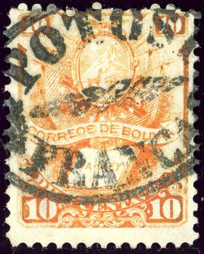 | Keywords: 1878 Bolivia 10c PotosiFranca Mi19.jpg  POTOSI Michel N°19 1878 2014-05-16 19 17 03 own American Bank Note Co Scan of cancelled stamp > 100 years old cc-zero Stamps of Bolivia Postmarks of Bolivia Stamps printed by the American Bank Note Company 1878 stamps Uploaded with UploadWizard Potosí |