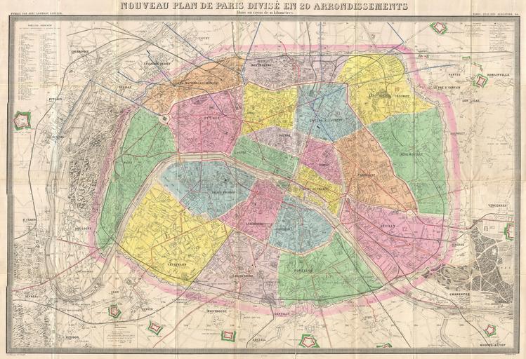 | Keywords: 1878 Logerot Map of Paris, France - Geographicus - Paris-logerot-1878.jpg  An extremely large 1878 pocket of Paris by A Logerot Covers the walled center of Paris as well as its immediate vicinity including the Bois de Boulogne and Bois de Vincennes All streets and many important buildings are noted throughout Color coded by arrondissement All text in French This map was first issued by Logerot in 1859 and updated annually through the 1880s This is the 1878 edition drawn by Ch Smith It was originally purchased by A H Green from F W Christern a stationer and bookseller established at University Place New York A H Green whose signature appears inside the front panel of the original binder acquired this map in preparation for his European Tour Though most maps are without substantial provenance this map is known to have been originally purchased for the European tour of the prominent 19th century New Yorker Andrew Haswell Green 1820 - November 13 1903 A H Green was a New York lawyer city planner civic leader and agitator for reform Called by some historians a hundred years later the 19th century Robert Moses he held several offices and played important roles in many New York projects including the development of Riverside Drive Morningside Park Fort Washington Park and Central Park His last great project was the consolidation of the Imperial City or City of Greater New York from the earlier cities of New York Brooklyn and Long Island City and still largely rural parts of Westchester Richmond and Queens Counties In 1903 Green was murdered in a case of mistaken identity He is buried in Worcester In 1905 his family estate in Worchester was turned into a public park Green's personal effects and other belongings were stored for over 100 years until recently being rediscovered and offed for sale 1878 dated Size in 41 29 object history credit line accession number Paris-logerot-1878 Geographicus-source PD-art Maps of Paris in the 19th century 19th-century maps of Paris Old locator maps of arrondissements of Paris 1878 maps 1878 in Paris |