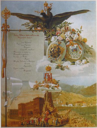 | Keywords: Микешин Меню 1889.JPG ru икешин еню б акосочетания вел князя Пет а иколаевича с княжной илицей Че ного ской суп из че епахи сте лядь тете ьки заливное из уток и т п Пете гоф 26 июля 1889 года 1889-07-26 own photo by Vizu Mikhail Osipovich Mikeshin 1835 1896 PD-art-100 Mikhail Mikeshin Petr Nikolaievich of Russia Princess Milica of Montenegro Coats of arms of the Russian empire Peterhof Images from Rodina magazine Food menus in Russian | ||||