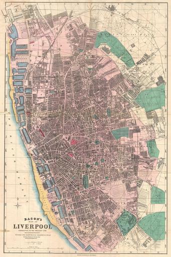 | Keywords: 1890 Bacon Pocket Map of Liverpool, England - Geographicus - Liverpool-bacon-1890.jpg  This is Bacon ™s scarce c 1890 travellers pocket map of Liverpool England Cartographically Bacon derived this map from the Ordinance Survey with embellishments including quarter mile grid and square segmentation beautiful hand tinting and a focus on the identification of docks rail stations churches municipal buildings parks and other important buildings Notes all streets and city wards Parks are highlighted in green pocks in blue sandbars in yellow and transportation hubs in red Published form C W Bacon ™s office at 127 Strand Street London This map was originally purchased in by A H Green in Liverpool bookseller and stationer H B Saunders Though most maps are without substantial provenance this map is known to have been originally purchased for the European tour of the prominent 19th century New Yorker Andrew Haswell Green 1820 - November 13 1903 A H Green was a New York lawyer city planner civic leader and agitator for reform Called by some historians a hundred years later the 19th century Robert Moses he held several offices and played important roles in many New York projects including the development of Riverside Drive Morningside Park Fort Washington Park and Central Park His last great project was the consolidation of the Imperial City or City of Greater New York from the earlier cities of New York Brooklyn and Long Island City and still largely rural parts of Westchester Richmond and Queens Counties In 1903 Green was murdered in a case of mistaken identity He is buried in Worcester In 1905 his family estate in Worchester was turned into a public park Green's personal effects and other belongings were stored for over 100 years until recently being rediscovered and offed for sale circa 1890 undated Size in 18 5 28 object history credit line accession number Liverpool-bacon-1890 Geographicus-source PD-old-auto 1922 Old maps of Liverpool 1890 maps 1890 in Liverpool |