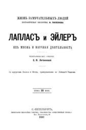 | Keywords: ЖЗЛ 1892.jpg  ru Титульный лист книги из се ии ЖЗЛ биог афической библиотеки Ф Ф Павленкова Литвинова Е Ф Лаплас и Эйле их жизнь и научная деятельность Собственная  абота 2010-12-29 Cc-zero Books from Russia 1892 Leonhard Euler Pierre-Simon Laplace |