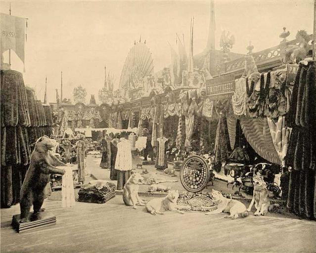 | Keywords: 1893 Chicago World's Fair Russian Furs Exhibit, Paul M. Grunwaldt.jpg 1893 Chicago World's Fair Russian Furs Exhibit Paul M Grunwaldt thumb Alaska Seal Jacke with lace by P M Grünwaldt Paris 1902 Displayed by Paul M Greenwald<ref>In the Catalogue of the Russian Section published by the Imperial Russian Commission Ministry of Finance S -Petersburg 1893 p 265/266 appear in Department H Group 105 Class 660 under number 561 GRINVALDT P St Petersburg Fur-dressing workshop Furs The firm exists since 1843 Production value 2 000 000 roubles per annum Hand and machine work 200 workmen Furs from the Commodore Island Kamchatka Siberia California Australia Queensland Sale in Europe America and Asia and under number 562 GRINVALDT E St Petersburg Fur trade and fur dressing workshop Samples of various furs fur articles Firm founded in 1892 separated from the above mentioned firm Machine and hand work Furs are purchased from the Russian Association of Sea-bear Idustry from Siberia California and Australia Sale in Europe America and Asia </ref><ref>On the sign in the picture the name is spelled P M GRUNWALDT</ref><ref>GRUNWALDT house exposed furs in the 1889 Exposition Universelle in Paris Cf The Engeneer Aug 2 1889 </ref><ref>P M GRUNWALDT sic Furrier to His Majesty the Czar advertises in the Chicago Daily Tribune Chicago Illinois issue date Wednesday November 1 1893 p 24 See also the brochure published for the season 1893/1894 by Maison de Fourrures P -M GRUNWALDT Fournisseur de S M l'Empereur de Russie 6 rue de la Paix Paris - 22 Newsky St-Petersbourg</ref><ref>Pavel Michailovitch GRUNWALDT St Petersburg and Paris advertises in the New York Evening Post New York issue date Tuesday January 9 1894 p 12 has decided to make a reduction in his stock of choice Furs in order to hasten his departure and make a total clearance For a short time only Now on Sale at 96 Fifth Avenue Corner 1 th St New York </ref><ref>Furs P M GRUNWALDT Paris 6 rue de la Paix advertises in the Special European Columns of the New York Daily Tribune Saturday July 4 1903 </ref><ref>N B Mr <u>Edward</u> GRUNWALDT was executive commissioner of the Russian Commission at the Louisiana Purchase Exposition 1906 Cf Final Report of the Louisiana Purchase Exposition Commission Febuary 8 1906 Pavels brother Relationship is not established </ref> in the Russian section of the Manufactures Building at the 1893 Chicago World's Fair The World Columbian Exposition also known as the World Columbian Exposition was held from May to October 1893 in Chicago in honor of the 400th anniversary of Columbus' discovery of the new world In competition with many other cities Chicago was finally designated the official site and the Exposition was built on 630 acres in and around Jackson Park It was a spectacular display of progress and prosperity and included among its many wonders electrical exhibits exhibits from other countries and a popular amusement area on the Midway Plaisance with carnival rides among them the first Ferris Wheel Most of the fair's architecture was based on classical design which gave the area around the Court of Honor the name The White City PERIODPAPER <references/> The Jewell N Halligan Company / Ebay periodpaper 1894 author PD-old Furriers in Chicago Grunwald Paul M Ermine clothing Taxidermied Ursidae Fur fairs Interior of the Manufactures and Liberal Arts Building at the World's Columbian Exposition Russia Furriers in Saint Petersburg Grunwaldt Paul Furriers in Paris Grunwaldt Paul Fur fashion in 1893 |
