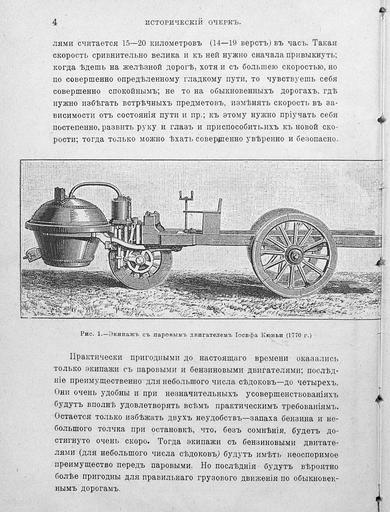 ... Самодвижущиеся экипажи, с паровыми, бензиновыми и электрическими двигателями; экипажи с педалями : Описание их устройства и действия / Н. Песоцкий. - Санкт-Петербург : паровая типо-лит. М.М. Розеноер, 1898. - [6], II, 167 с., 110 ил.; 22.