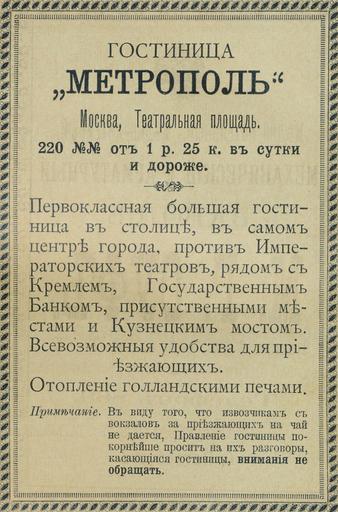 Keywords: Реклама гостиницы Метрополь, 1899.jpg ru Реклама гостиницы ет ополь 1899 год 2014-10-06 03 29 18 Весь Пете бу г на 1899 год Ад есная и сп авочная книга г С Пете бу га Издание А С Суво ина С 21 екламного блока Скани ование Владими Васильев other versions PD-old-70-1923 Uploaded with UploadWizard Advertisements in Russia 1900s advertisements Hotel Metropol Moscow |