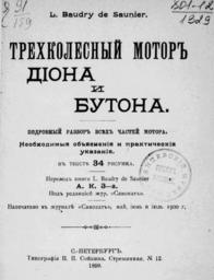 | Keywords: saunier 1899 translation rsl russian state library russianstatelibrary russian empire russianempire history of automobile historyofautomobile дион-бутон дионбутон dion-bouton dionbouton трицикл three-wheeler threewheeler tricycle издательство самокат издательствосамокат перевод blackandwhite monochrome text writing document black and white Бодри де Сонье, Луи (1865-). ... Трехколесный мотор Диона и Бутона : Подроб. разбор всех частей мотора : Необходимые объясн. и практ. указания : В тексте 34 рис. / L. Baudry de Saunier; Пер. кн. L. Baudry de Saunier А.К. З[верев]а; Под ред. журн. "Самокат". - Санкт-Петербург : тип. П.П. Сойкина, 1899. - 70 с. : ил., черт.; 15. Напеч. в журн. "Самокат", май, июнь и июль 1900 г. На 1-й странице обл. объявл. Акц. о-ва постройки и эксплоатации экипажей и автомоб. Фрезе и К° Хранение: E 91/159; Хранение: 801-12/1329; dlib.rsl.ru/rsl01003000000/rsl01003644000/rsl01003644659/... Бодри де Сонье, Луи (1865-). ... Трехколесный мотор Диона и Бутона : Подроб. разбор всех частей мотора : Необходимые объясн. и практ. указания : В тексте 34 рис. / L. Baudry de Saunier; Пер. кн. L. Baudry de Saunier А.К. З[верев]а; Под ред. журн. "Самокат". - Санкт-Петербург : тип. П.П. Сойкина, 1899. - 70 с. : ил., черт.; 15. Напеч. в журн. "Самокат", май, июнь и июль 1900 г. На 1-й странице обл. объявл. Акц. о-ва постройки и эксплоатации экипажей и автомоб. Фрезе и К° Хранение: E 91/159; Хранение: 801-12/1329; dlib.rsl.ru/rsl01003000000/rsl01003644000/rsl01003644659/... |