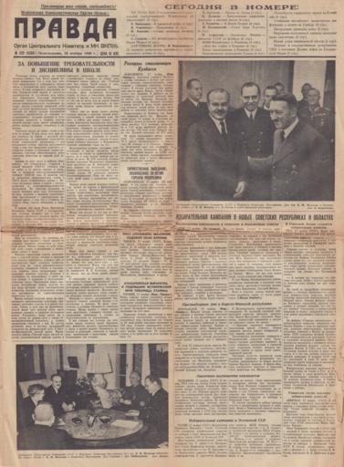 Keywords: Правда 18.11.1940.png Пе вый лист газеты П авда Экземпля газеты 1940-11-18 газета П авда PD-Art Pravda