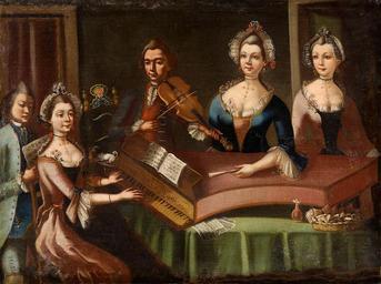 Keywords: 18 century house concert.jpg author oil canvas cm 76 102 object history Provenance unknown credit line http //www duesseldorfer-auktionshaus planetactive com century 18 PD-Art Other versions PD-old Musicians in art Portraits with harpsichords Portraits with violins Portraits with musical scores Naïve portraits before 20th century Family portraits Group portraits with 5 persons Images from Düsseldorfer Auktionshaus