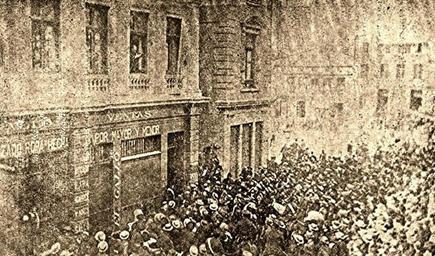 | Keywords: 1903, Valparaíso, Huelga Portuaria - Fdez vial y Plummer tratan dialogar con la masa.jpg Arturo Fernández Vial y al diputado Guillermo Plummer de Ferrari por sus esfuerzos en evitar que aumentaran los enfrentamientos callejeros el 12 de mayo de 1903 Fernández Vial mantuvo una actitud dialogante con los trabajadores en los días previos a estos hechos Respecto del diputado Plummer Mario Garcés señala que él junto al intendente de Valparaíso y otras personalidades se dirigió a la multitud señalando «prometemos solemnemente al pueblo todos nosotros arreglar dentro de una hora de plazo sus dificultades pero por la patria por la libertad deténganse un momento» La única respuesta fue una avalancha de gritos y entre ellos uno que decía «Es tarde es tarde ya para engañar al pueblo» Unknown Unknown author PD-Chile Huelga Portuaria de Valparaíso 1903 Uploaded with UploadWizard |