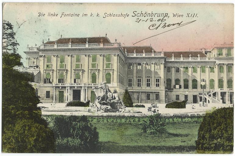 | Keywords: 19061221 wien linke fontaine schonbrunn.jpg fr Vue de Vienne au début du XXe siècle 1906 dated by the editor Vintage postcards private collection author other versions PD-old-70-1923 Palace and gardens of Schönbrunn Postcards of Austria-Hungary Verlag K Ledermann Wien 005264 1906 in Vienna Postcards uploaded by user Jean Housen Uploaded with UploadWizard |